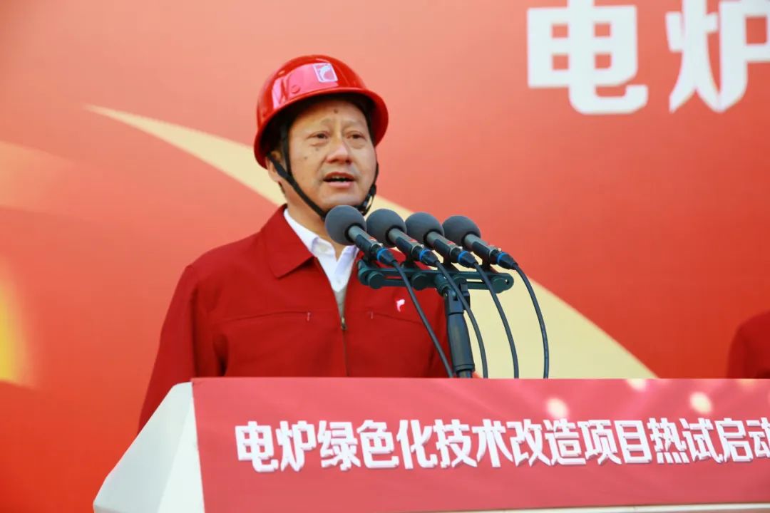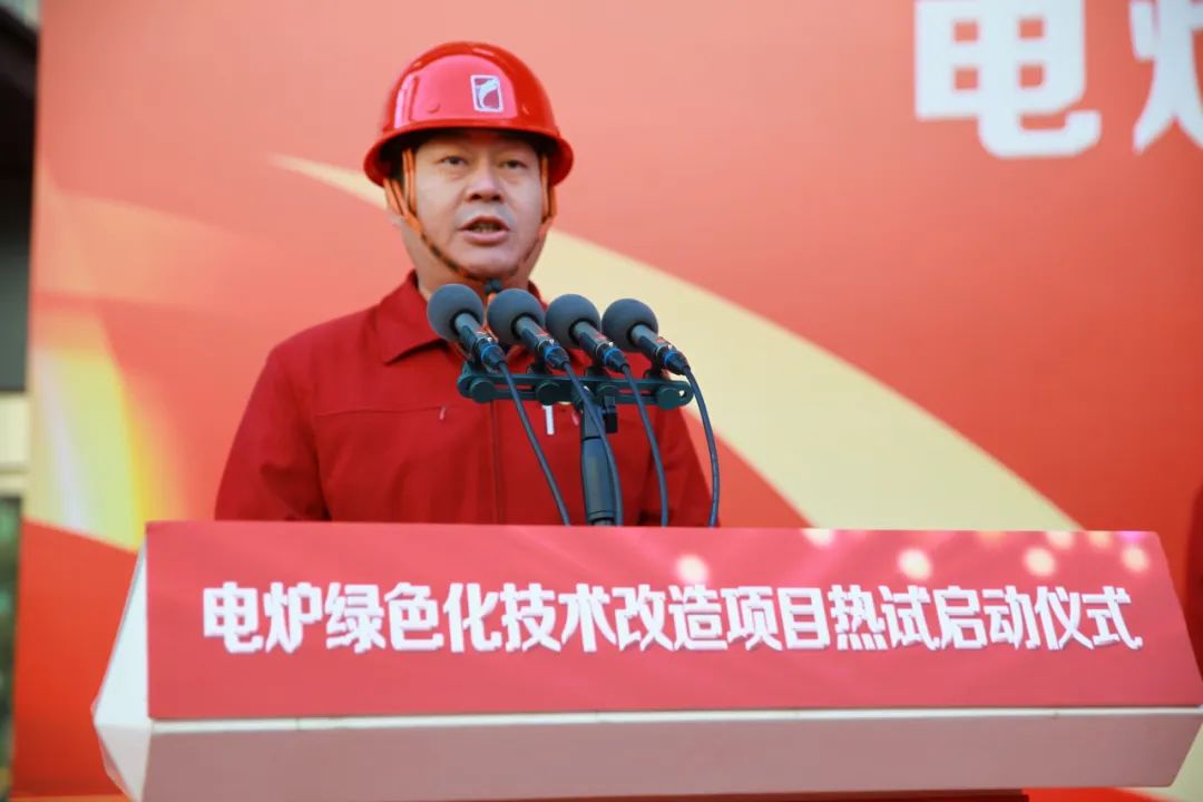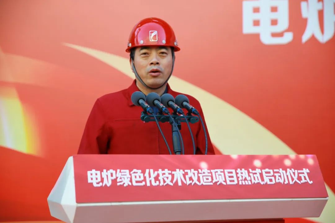 呂紀永為儀式致辭,他表示,電爐綠色化技術改造項目代表了公司實施綠色低碳高質(zhì)量發(fā)展的決心。新電爐建設采用了最先進的水平加料,最成熟的工藝路線,最前沿的電爐+真空澆筑,實施最嚴格的超低排放標準,該項目的投產(chǎn)可以降低煤耗8萬多噸,助力企業(yè)加快轉(zhuǎn)型升級和結(jié)構(gòu)調(diào)整,必將成為引領企業(yè)實施綠色低碳高質(zhì)量發(fā)展的一面旗幟。