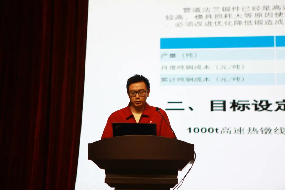 汽鍛公司軸承鋼球分廠吳雨凡作《法蘭鍛造優(yōu)化成本》課題匯報(bào)。